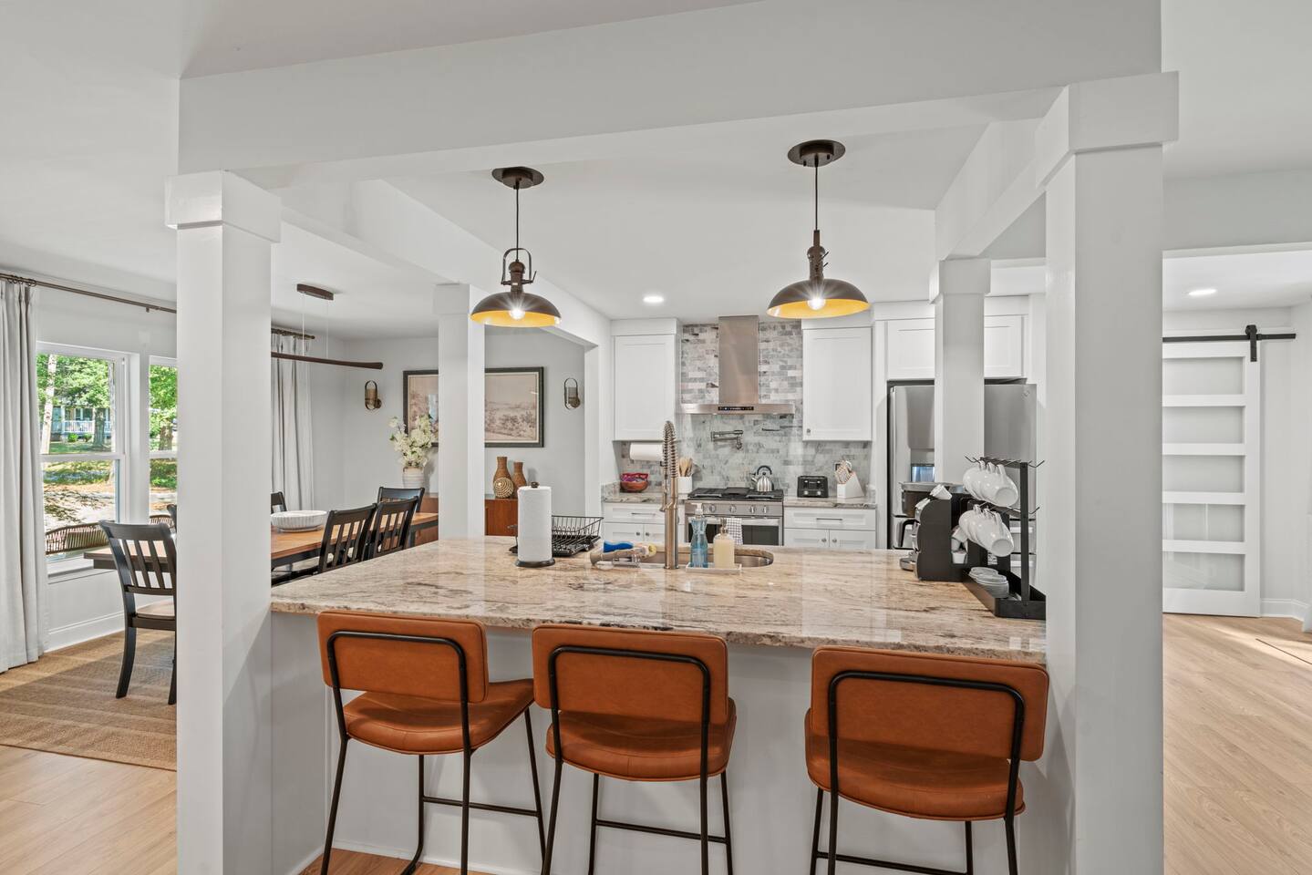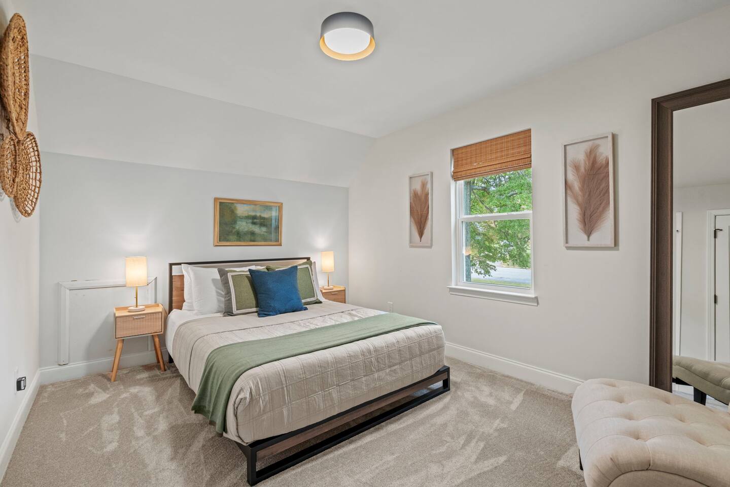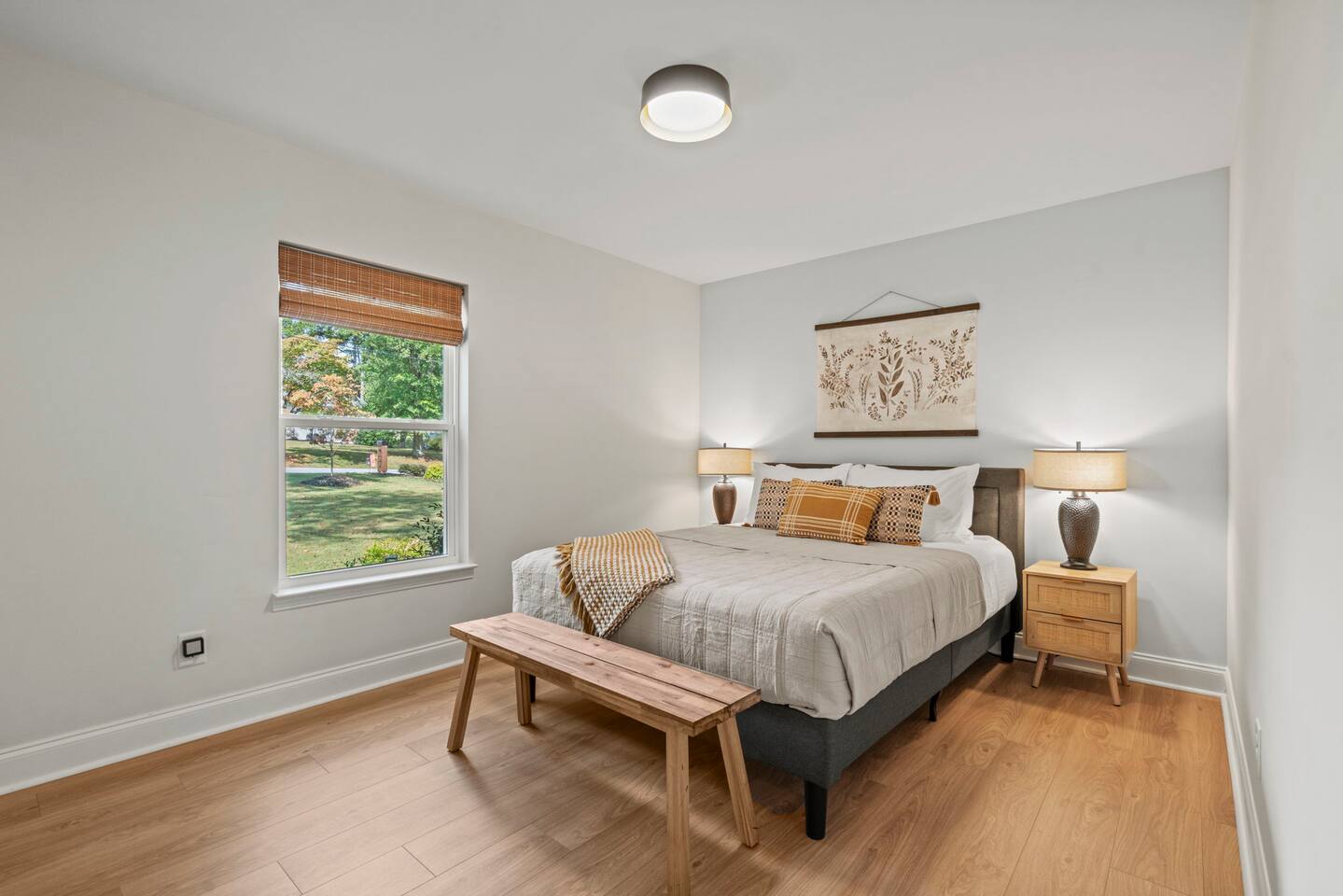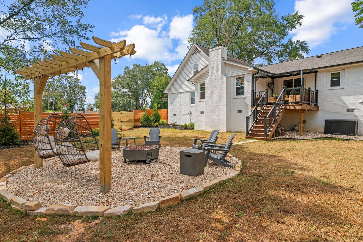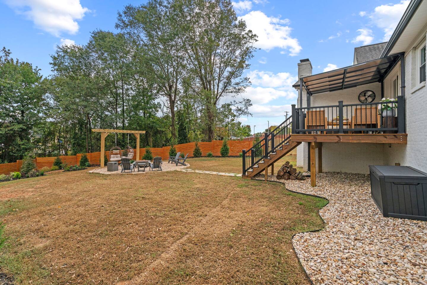 Welcome to your luxury Greer getaway—a beautifully updated 4-bedroom, 3-bath home designed with both relaxation and connection in mind. Thoughtfully furnished and styled, this spacious retreat offers everything you need for a seamless stay, whether you’re in town for a special celebration, a family trip, or a weekend exploring Upstate South Carolina. Inside, the main level features a luxurious king suite with an oversized en suite bath and a walk-in closet complete with a makeup vanity—ideal for getting ready in style. A second downstairs bedroom, featuring a queen bed, also includes its own vanity area, with a full bath conveniently located just outside the door. Upstairs, two additional queen bedrooms share another full bathroom, providing everyone with plenty of space to spread out The open-concept main living area is warm and inviting. The dining room seats six and flows into the modern kitchen, equipped with a large island with three barstools, stainless steel appliances, and ample prep space. The great room centers around a gas fireplace, creating a cozy place to gather. Sliding doors lead to the covered patio, where comfortable seating overlooks the private, fenced backyard. In addition to a covered outdoor space, enjoy evenings by the gas fire pit, surrounded by Adirondack chairs and egg swings beneath a brand-new pergola. The yard has been designed as an extension of the home—perfect for unwinding, entertaining, or simply soaking up the fresh air. Additional features include a dedicated laundry room with a washer and dryer, and high-speed Wi-Fi. Please note that no pets are allowed. Location Highlights: - Just off Wade Hampton Blvd (walk to Aldi and nearby restaurants) - 5 min to Downtown Greer (Greer City Park, shops, dining) - 15 min to GSP International Airport - 20 min to Downtown Greenville (Falls Park on the Reedy, Peace Center, award-winning dining) - 40 min to Paris Mountain or Table Rock State Park - A little over an hour drive to Pretty Place Chapel Whether you’re here for a family gathering, friends’ getaway, or a short-term work trip, this Greer home provides the perfect blend of comfort, convenience, and style.