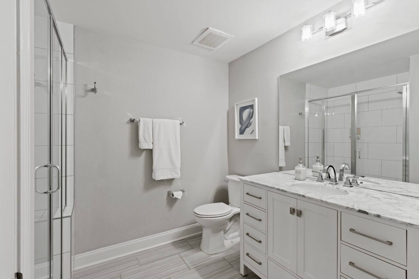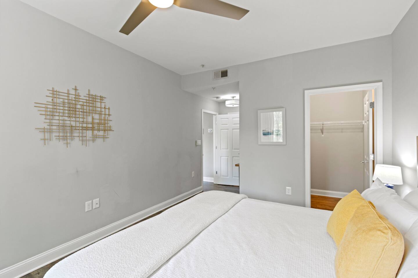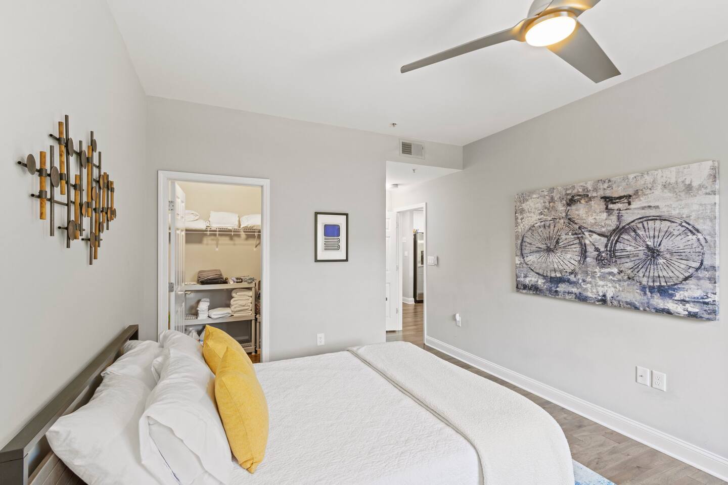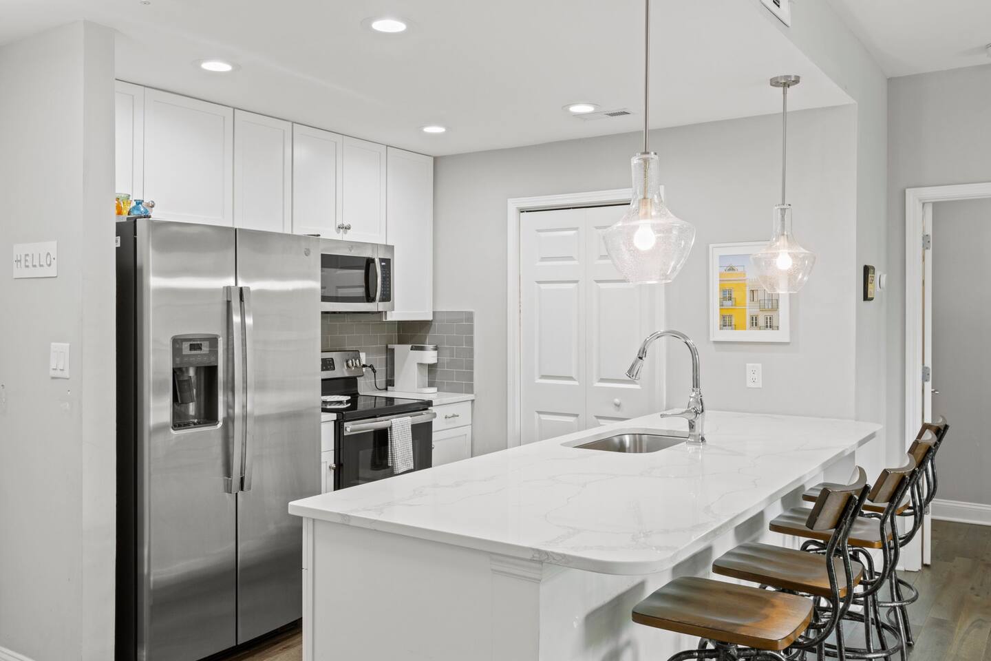 Guests will enter our condo from an elevator off of Main Street. Parking is available in the nearby Spring St Garage for $7/day. Once inside, guests will enjoy a beautiful kitchen with bar seating for four, a lovely sectional sofa and accent chair, and a TV that they can use to access their personal streaming services (no cable). Off of the living room is a small balcony overlooking the downtown area. The bedrooms are located on each side of the living room. The left bedroom has a Queen bed, nightstands, and a chair in the corner. The attached bathroom has a single vanity, toilet, and stall shower. On the other side of the unit is our second bedroom, featuring a Queen bed and a sofa. This bedroom also has an en-suite bathroom with a toilet, single vanity, and stall shower. Laundry is available for guests and is located in the closet right off of the kitchen. We think of everything, so you don't have to. So get ready, pack your bags, and come experience Greenville from our amazing condo!