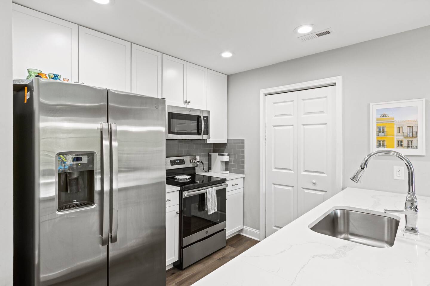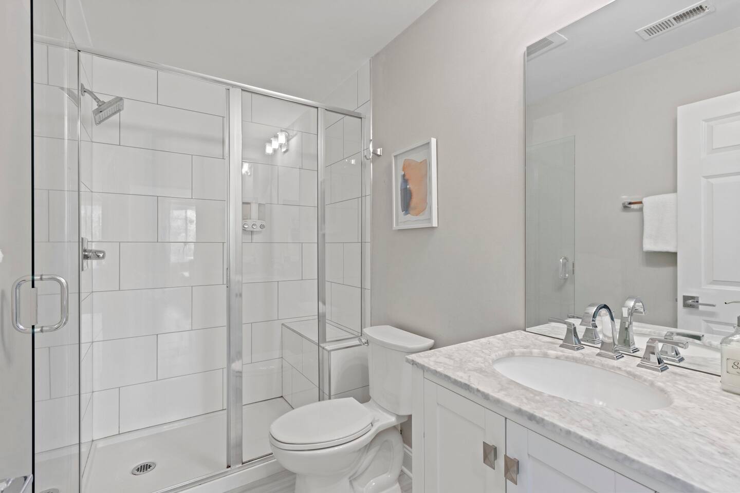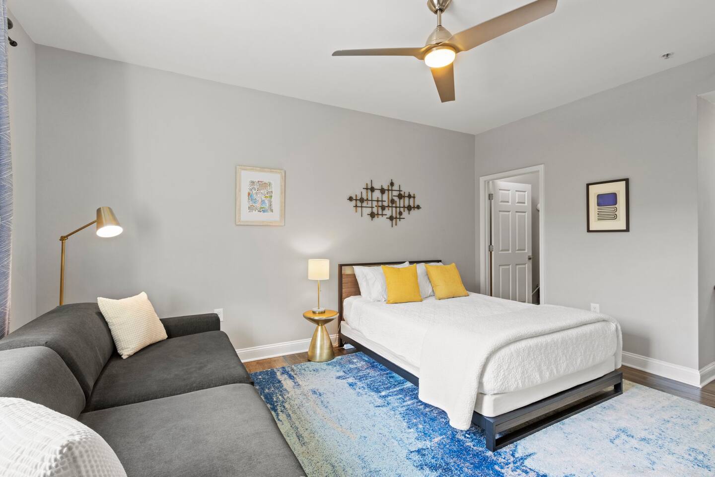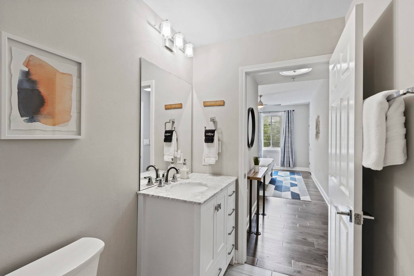 Guests will enter our condo from an elevator off of Main Street. Parking is available in the nearby Spring St Garage for $7/day. Once inside, guests will enjoy a beautiful kitchen with bar seating for four, a lovely sectional sofa and accent chair, and a TV that they can use to access their personal streaming services (no cable). Off of the living room is a small balcony overlooking the downtown area. The bedrooms are located on each side of the living room. The left bedroom has a Queen bed, nightstands, and a chair in the corner. The attached bathroom has a single vanity, toilet, and stall shower. On the other side of the unit is our second bedroom, featuring a Queen bed and a sofa. This bedroom also has an en-suite bathroom with a toilet, single vanity, and stall shower. Laundry is available for guests and is located in the closet right off of the kitchen. We think of everything, so you don't have to. So get ready, pack your bags, and come experience Greenville from our amazing condo!