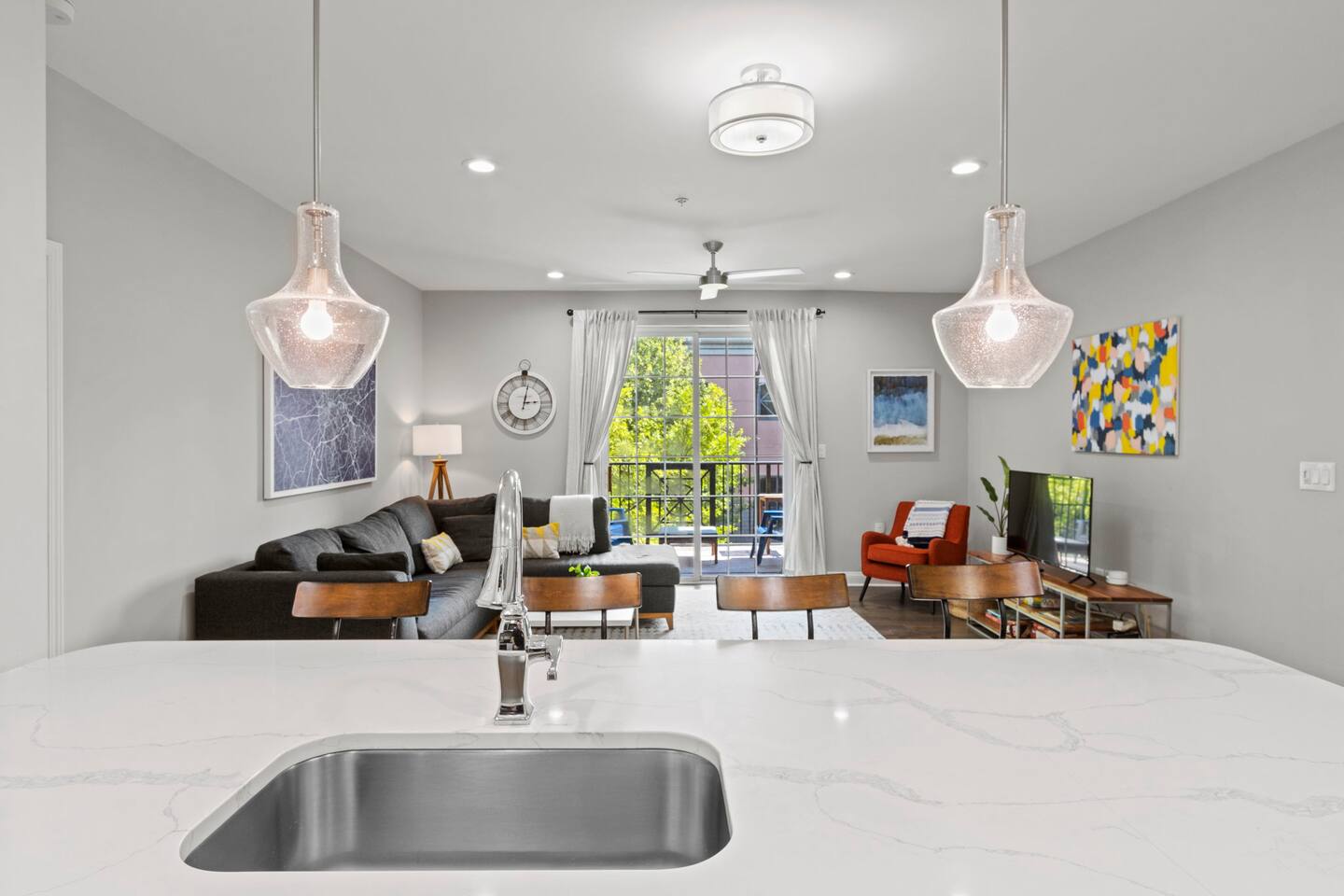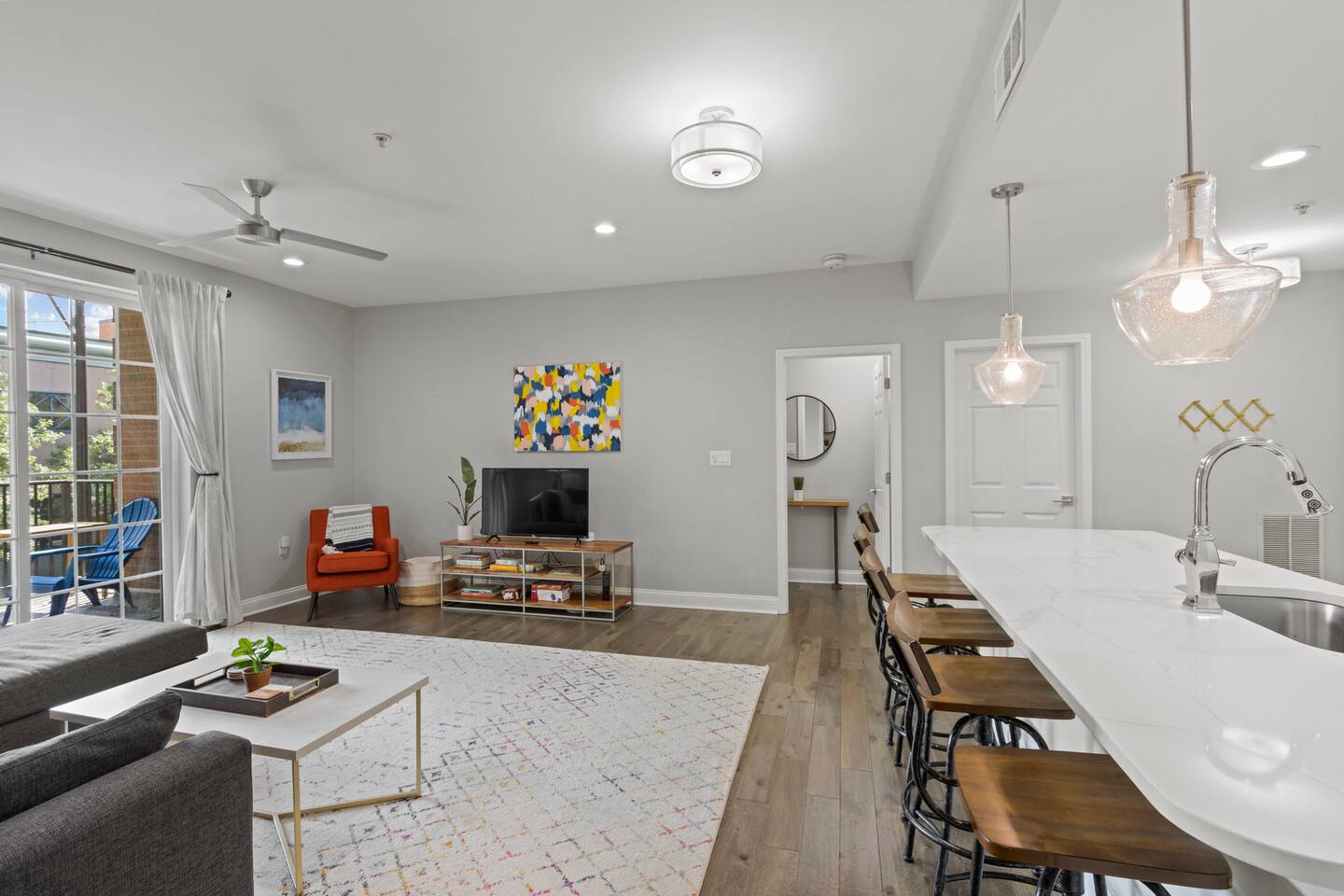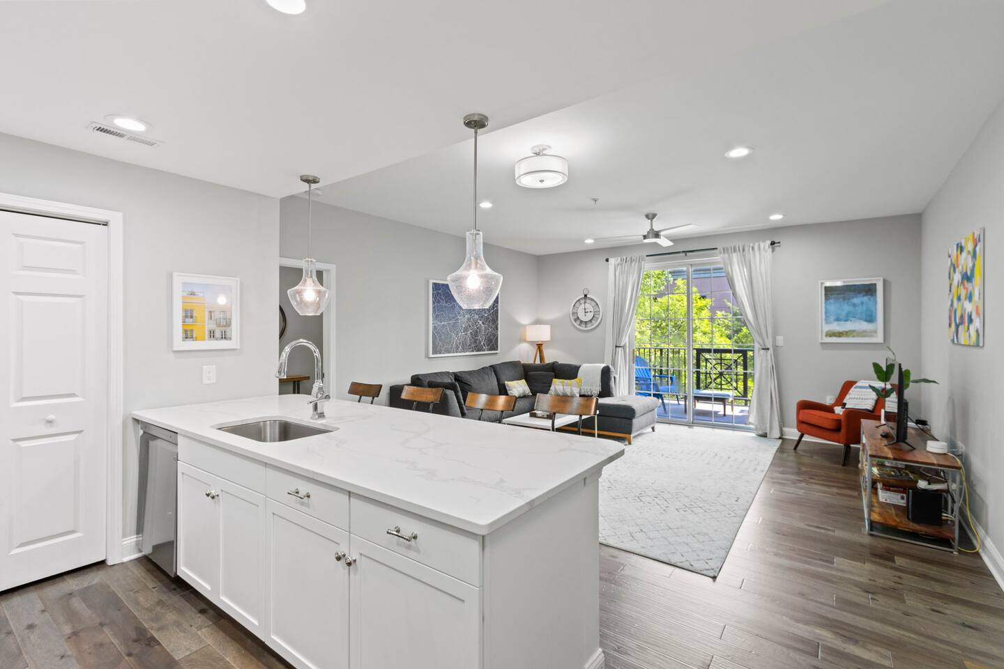 Chic 2BR Apt, Steps from N Main St, Balcony View