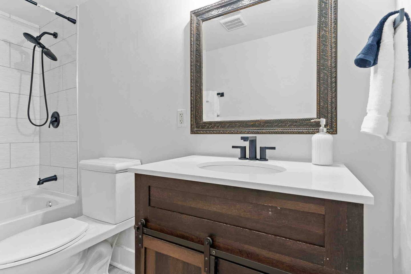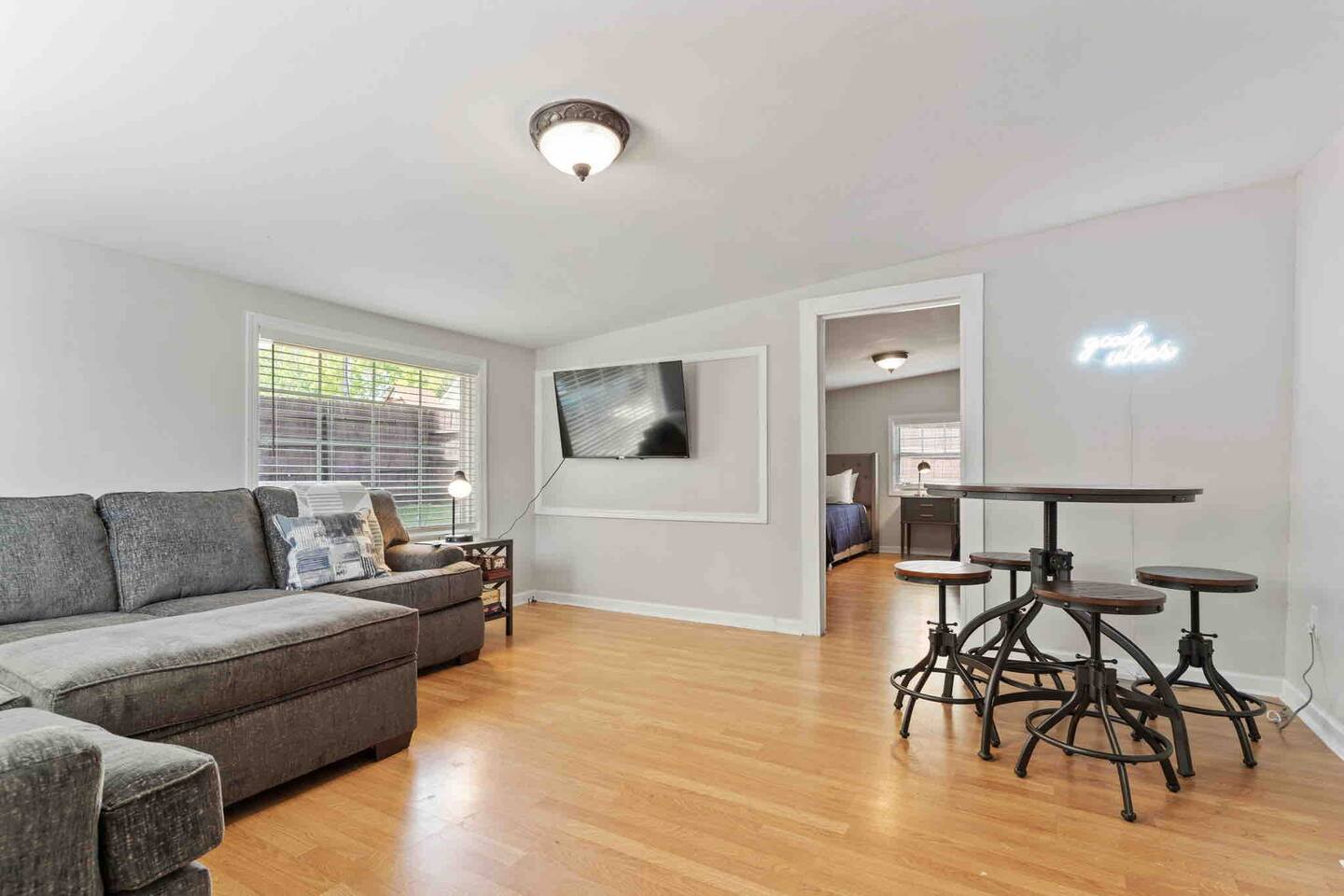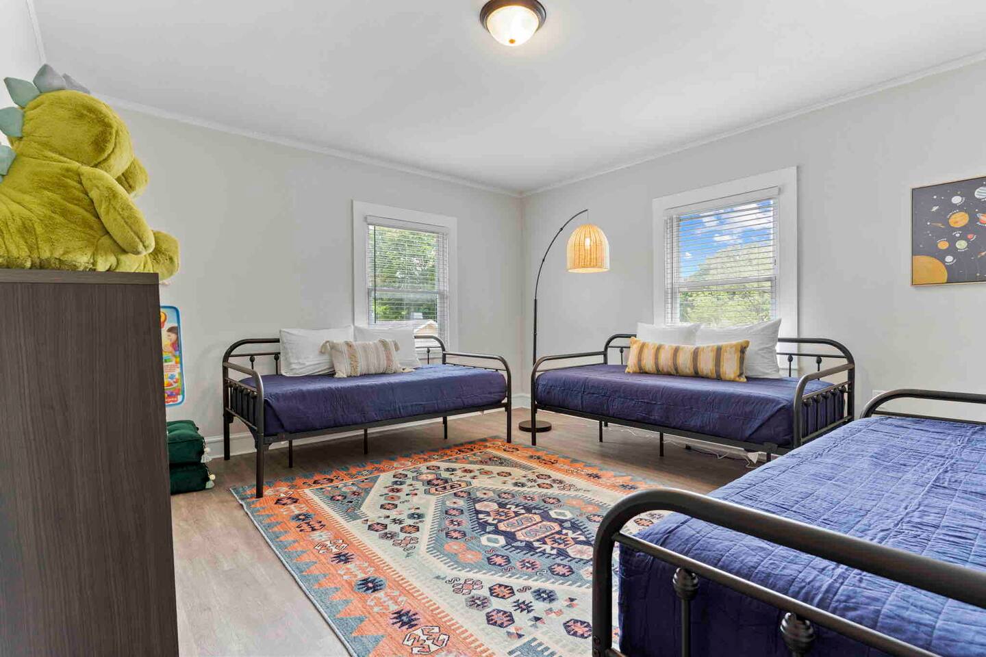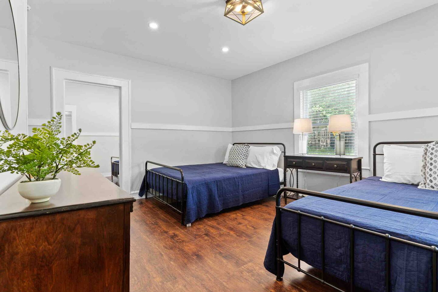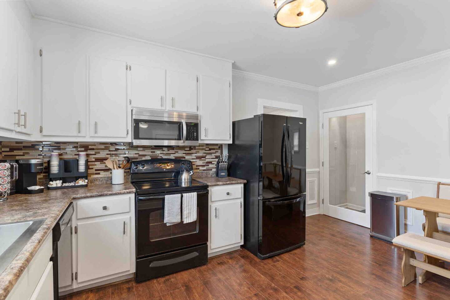Welcome to the Village Inn! We can't wait to share this historic home with you. As said above, we are right near the Village of West Greenville, and are located on a fenced-in corner lot on the main road. Due to this, you can expect some traffic noise, as well as foot traffic in the neighborhood. Please take a moment to check out our floor plan as well as the description below so that you can best plan for your stay! When you arrive at our home, you will find parking for at least 3 cars on the gravel driveway to the left. Additional street parking is available as well. Once inside, you will find our main living room, which features: -A couch and 2 armchairs -Electric fireplace (with customizable heating output!) -Smart TV, ready for you to log in to your streaming services (no cable) -Coffee Table -Bar seating for 4 The living room leads into our open kitchen, which contains all you will need to whip up a great meal, including: -Place settings and silverware for 16 -Baking supplies -Pots, pans, and skillets -Keurig -Toaster -Glasses and wine glasses -Spices + Oil Our kitchen also features a dining nook with a "buffet style" table and bench, seating 4-6. Off of the kitchen, you will find the Laundry Room and closest full bathroom. This leads down into the Family Room, where you will find: -A full sectional sofa + ottoman -Large Smart TV -High top table for 4 under our Neon Light -Dog bed, if needed -Games for you and your guests to enjoy :) We also have a large, freshly sodded fenced in backyard with patio seating for 5 :) In addition to these gathering areas, we have 5 bedrooms, which are detailed below. ~The First Floor~ The first floor contains 3 bedrooms The Double Queen Room This room is located right off of the main living room and contains: -2 Queen Beds -Nightstand with Reading Lamps -Full size dresser w/ mirror The King Room This room is attached to the Queen room (you must walk through it to get to this room) and has the en suite bathroom at the end of it (those in the Queen room would go through the King room to get to this bathroom). This room contains: -1 King Bed -2 Nightstands and Reading Lamps The en suite bathroom features a closet and single vanity sink, and a separate room for the traditional tub/shower combo and toilet. The Double Full Room On the other end of the home, off of the family room, is our Double Full room which contains: -2 Full Beds -Nightstand and reading light -Cube storage with fabric drawers This room would use the full bathroom located off of the nearby laundry room. This bathroom features a single vanity, toilet, and standard tub/shower combination ~The Second Floor~ Off of the kitchen is a door that leads to the upstairs-- please note these stairs are steep, and taller than normal. The two rooms at the top share a brand-new bathroom in between, containing a single vanity, toilet, and tub-shower combination. To the right is the King Room, serving as second Master. It contains: -King Bed -2 Nightstands and Reading Lamps -Tall Dresser To the left is our Kid's Room, which contains: -3 Twin daybeds -Play rug and kid friendly decor -Floor lamp -2 floor cushions -Cubbies with toys ranging from stuffed animals to hot wheels to building blocks -Baby gate for safety. A pack n play is also available for your use :) *Pets are welcome in our home with a one-time fee, automatically applied when you add your pet as a guest during booking As you can see, we've thought of everything, so you don't have to. Grab a family or two, your close friends, or whoever you wish and come enjoy all that The Village Inn has to offer! We can't wait to have you!